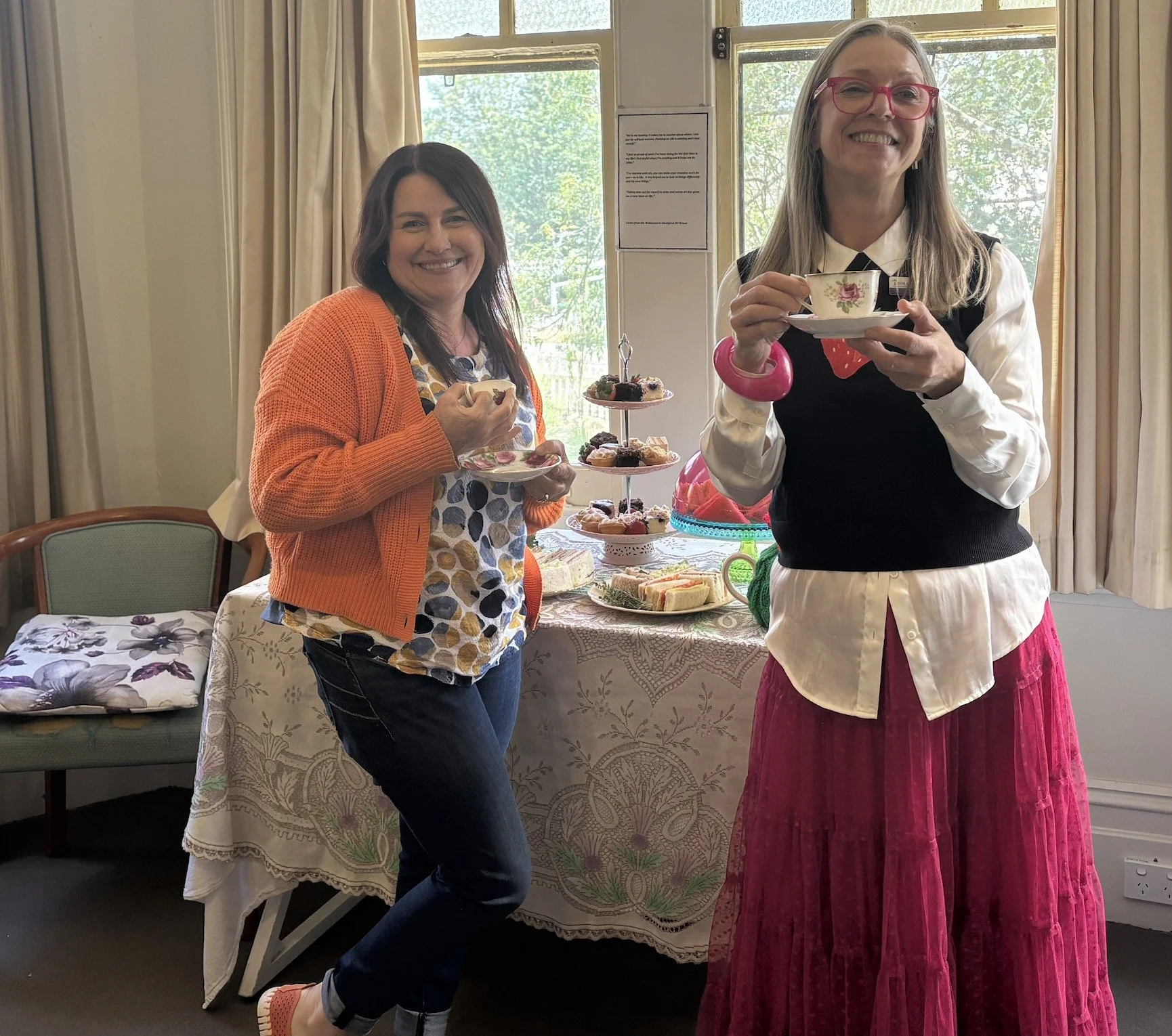 Workshop facilitators, Renee Vincent (Resilient Villages) and Cherie Brandon (Blue Mountains Women's Health & Resource Centre) host a sumptuous high tea for attendees